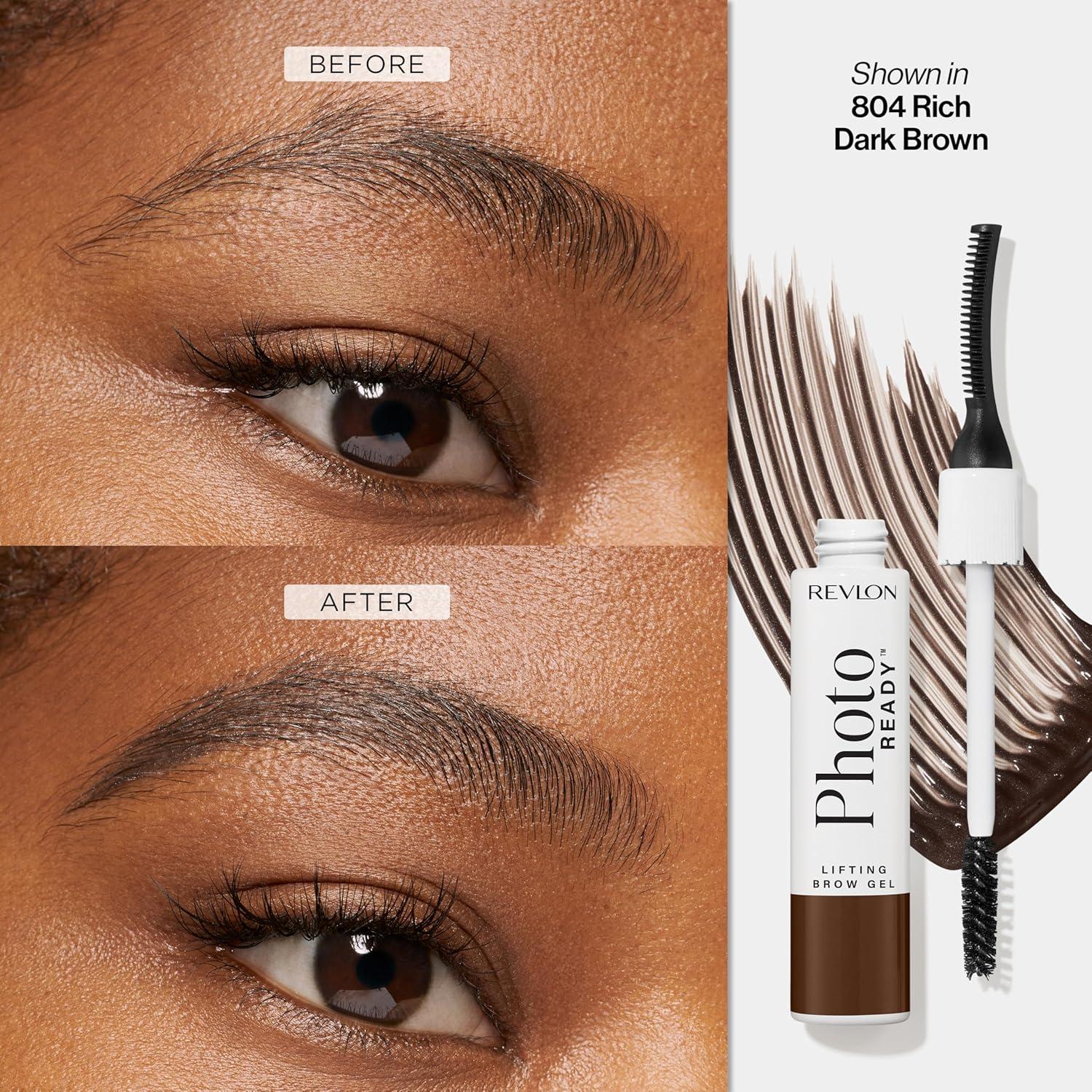 Revlon PhotoReady Lifting Brow Gel, Tinted Eyebrow Lamination with Spoolie Brush, Conditions, Shapes & Defines, 804 Rich Dark Brown, 0.23 fl oz