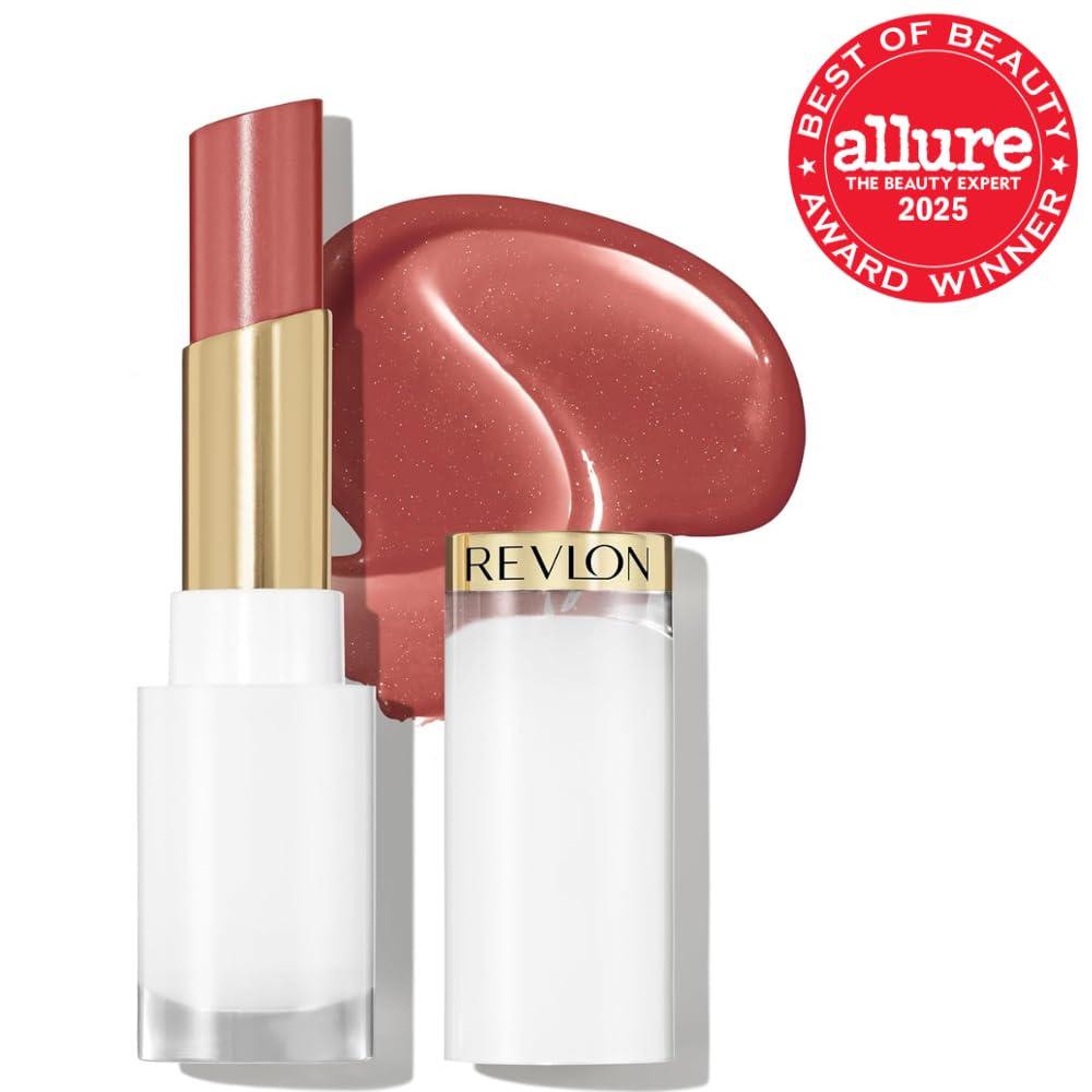 REVLON Super Lustrous Glass Shine Balm, Hydrating Tinted Lipstick, Sheer, Glossy Shiny Finish, 008 Rum Raisin, 0.11 oz(004 Nude Illuminator)